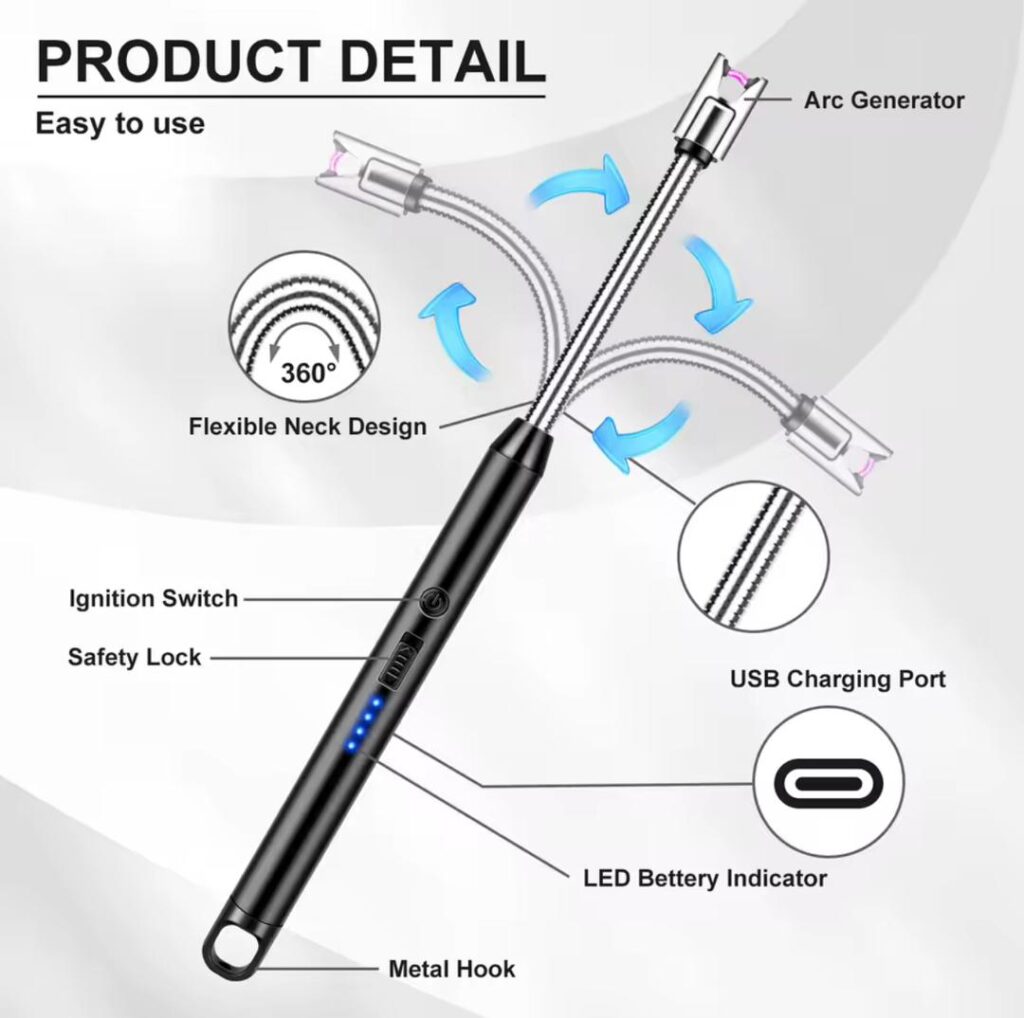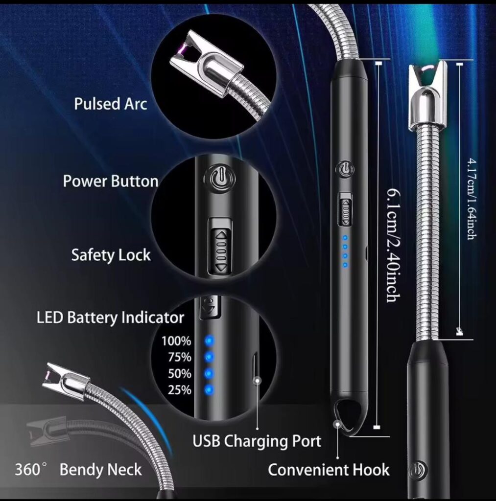 This lighter uses electric arc technology instead of a traditional flame, making it windproof, fuel-free, and perfect for everyday or outdoor use.